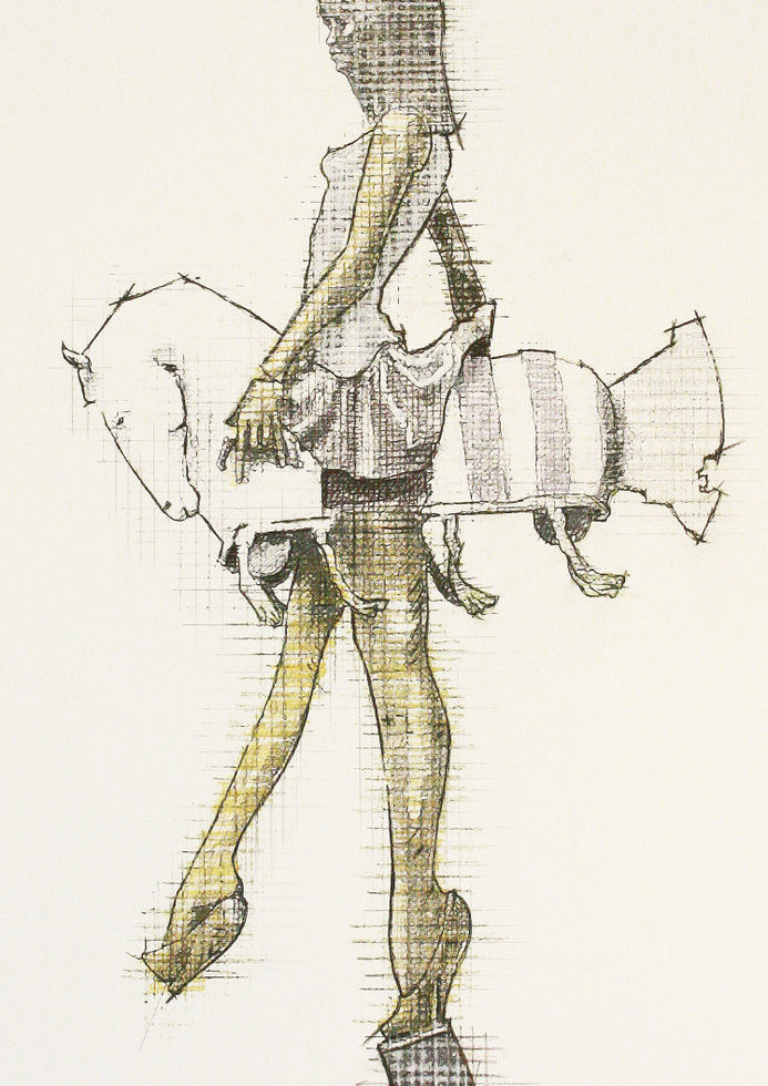 "Optional Extras" is a striking bronze sculpture of a female figure walking, with a carnival horse wrapped around her waist, suggesting a playful yet thought-provoking commentary on identity and external influences. The juxtaposition of the graceful human form with the whimsical, almost surreal image of the horse may explore themes of freedom versus constraint, and how societal or cultural attachments—whether chosen or imposed—become integral to who we are. The title implies that these "extras" are both optional and inescapable, reflecting the complex relationship between individuality and external expectations.
